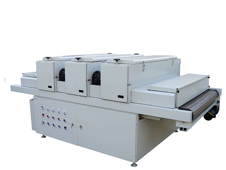 高壓汞燈。該燈管光變普范圍在350 nm-450 nm之間,主峰值為365 nm,采用進口石英管材及鎢鉬材料,用料好、強度高、壽命長,燈罩與工作面140-180mm高度范圍可調(diào),提高了固化質(zhì)量,并可全光或半光工作。輸送部分采用輥筒式輸送設(shè)計,不易變形,運送物料更加平穩(wěn),工作中無需調(diào)整,沒有噪音,改善了由于輸送帶跑偏而產(chǎn)生的不便維修很方便。配置大流量排風(fēng)系統(tǒng),散熱效果好,確保箱體內(nèi)的溫度始終在標準值范圍內(nèi),使